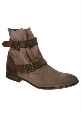 Lässige Ankle-Boots: STARLEY in Beige von H by Hudson. Das Wildleder in Used-Optik macht diesen Schuh besonders trendy. Der weite Schaft wird durch zwei dunkelbraune Riemen gehalten. Tolles Detail ist die aufgesetzte Fersenkappe aus dunkelbraunem Glattleder. Ein flacher Absatz rundet den Stil des hochwertigen Lederschuhs ab. Besonders schön zu engen Hosen oder Röcken – STARLEY, die beigen Ankle-Boots von H by Hudson.