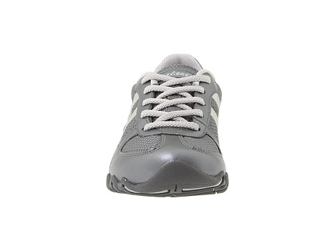 Metallic-Leder und Mesh-Obermaterial mit kontrastierenden Seitenstreifen und Stich Detail.
